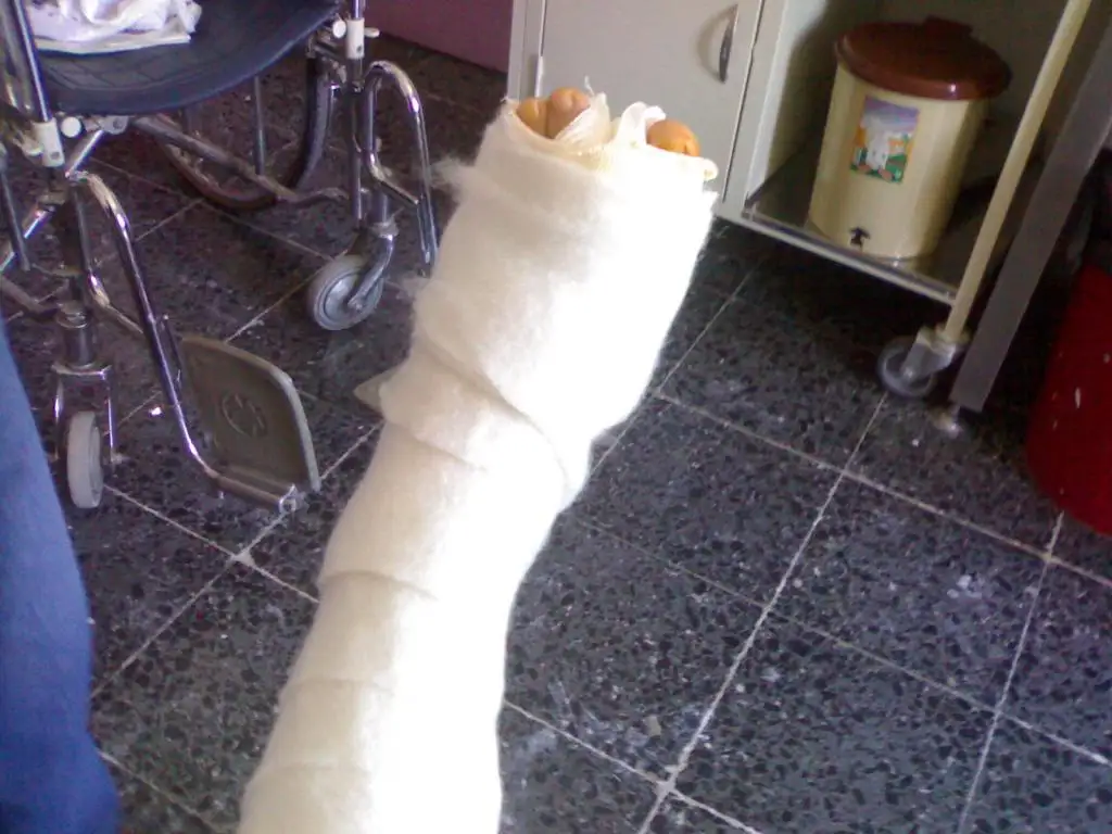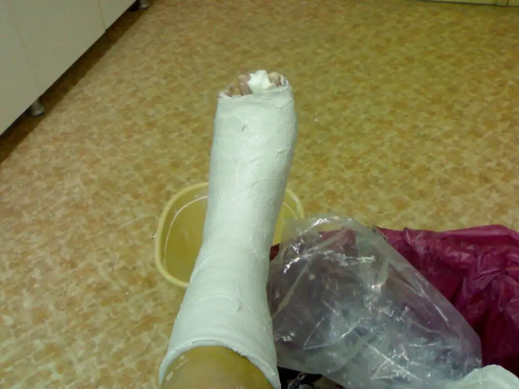 ama ağrıdan duramıyorum. uyuşmalar yanında cabası. fotoğraftan da farkedileceği gibi ayağımı anatomik duruşa ters olarak alçıya almış