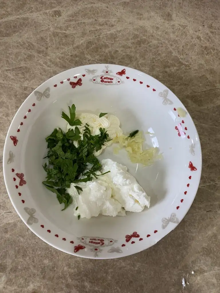 Hamburger sosu icin sarimsagi rendeliyoruz maydonozu ince kiyiyoruz hepsini guzelce karistiriyoruz.Eki Görüntüle 2693689 Eki Görüntüle 2693692 Eki Görüntüle 2693690
