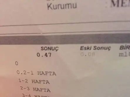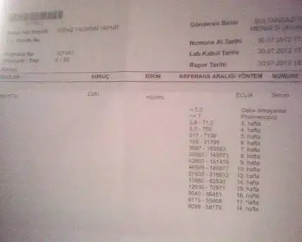 Benim sonucumda gebelik haftalari ve degerleri yaziyordu ve beta hcg 385 yaziyordu