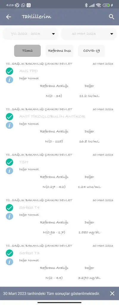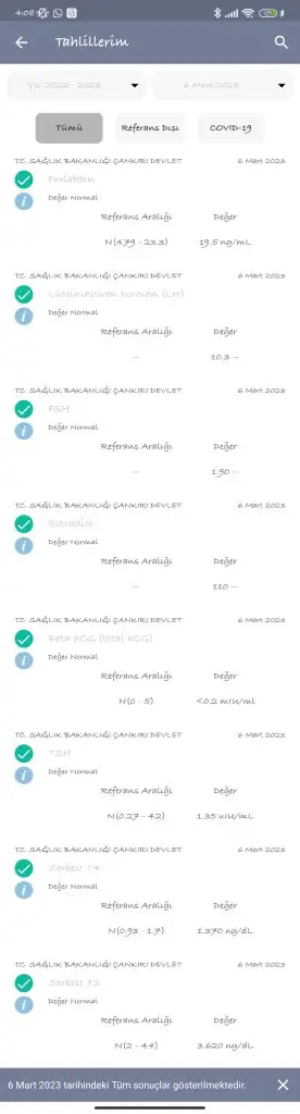 Ben 11 Mayıs 2022'de düşük yaptım, öncesinde de 1 senede hamile kalabilmiştim. Doktor hormonlarımda sorun olmadığını söyledi, eşim de baktırdı onda da bir sorun yokmuş. Adet gecikmesi yüzünden doktora gittim, hormon baktırdı sonuçlar ilk resimdeki gibi çıktı. Adetin 2. günü tekrar test vermemi söyledi, bu sefer TSH düşük çıktı. Dahiliye bölümüne yönlendirildim, orada normal çıktı. Yardımcı olur musunuz ben pek anlamıyorum bu testlerden.