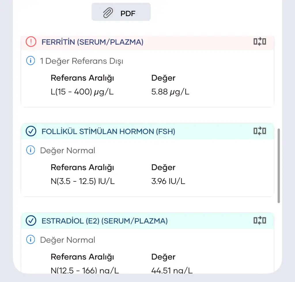 demir anemisisin ama demir ilacı kullanman lazım demir hiç kalmamış vucudundaSizce değerlerim nasıl pco lu olduğum nerden anlaşılıyor