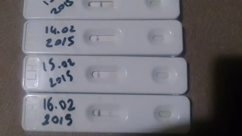 bugün 6. günüm ama sol kasığımda sancı başladı. Pre.....r marka ovulasyn tetsi sipariş ettim, gerçi 2 aydır bıktım ovulasyn tetslerinden, ama bir d ebu markayı deneyeceğim kan testini d etakip edicem, bakalım akşam gelecekmiş. deneyeceğim. 7 tane varmış kutuda.en son koyduğum 16.02 olan yani en koyusu içlerinde 13. gün. bugün 14 testi akşam yapıcam yine. ya testi beklemeden gün aşırı çalışıyoruz ama bi taraftan da yumurtlayıp yumurtlamadığımı merak ediyorum sırf o meraktan testleri yapıyorum. resimlerde iyice açık durmuş normalde sanki daha koyuydu ya. resme bakınca ben bile yok bu negatif dedim şimdizaten yumurtlasam da bakalım kaliteli mi gelecek yumurta. bu ay pek ümidim yok ama hayırlısı bakalım
