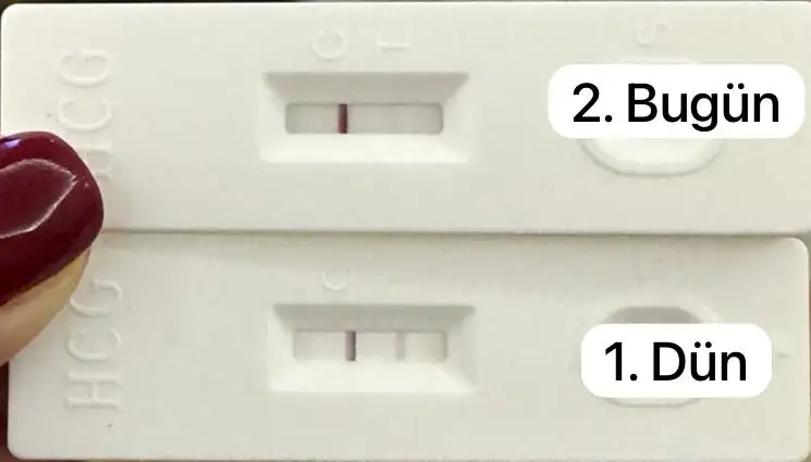 Merhaba hanımlar, 1 gün arayla aynı markaya ait iki test yaptım ve sonuç bu şekilde çıktı. İlk yaptığımda silik çizgi varken 2. Testte tek çizgi var. Sizce hamile miyim? Bu arada adet olmam gereken gün üzerinden 15 gün geçti. Daha önce Ekim ayında da 13 gün gecikmeli adet olmuştum. Kasım ayında ise zamanında oldu. Düzensizlik mi yoksa hamilelik mi bilemedim 🙄