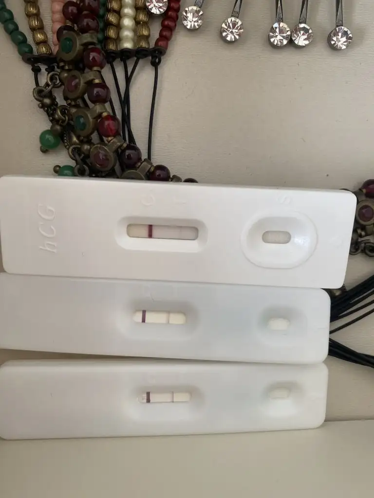 Kızlar merhabalar benimde bugün adet olmam gerekiyordu olmadım aşağıdan yukarıya doğru bata 4 gün kala 3 gün kala ve bugün testlerim bu şekilde. Fotoğrafta tek olan test bata 4 gün kala yaptığımın 1 dk olmadan olan sonucu diğerleride bu şekildeydi 3 4 dk sonra böyle daha koyulaştı hepsi çözemedim fikrinize ihtiyacım var koyulaşması gerekmez mi her geçen gün 🙄