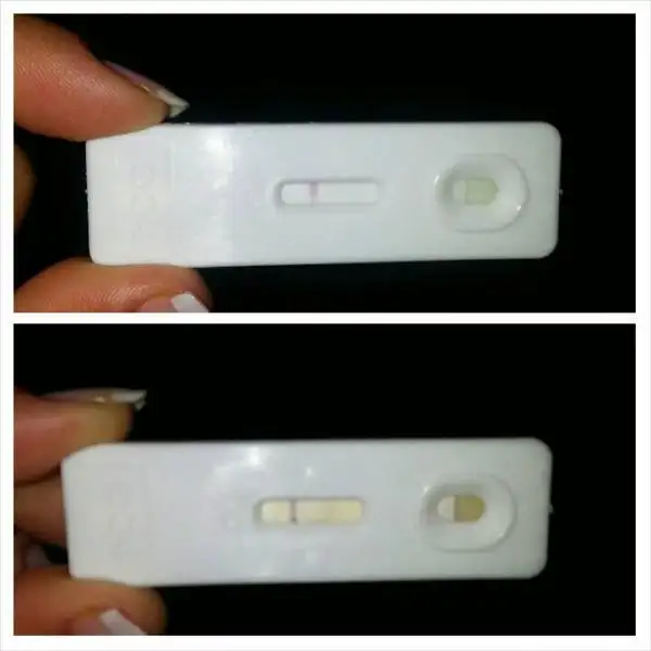 Kizlar merhaba dün aksam ve bu sabah test yaptim ve sonuclari resimde görüldüğü gibi altta olan foto aksam yaptigim, üstteki bu sabah olan.. aksamki yaptigimda belli belirsiz de olsa ikinci cizgi sanki var ama bu sabahkinde ayni durum söz konusu degil sizce hamile olma olasiligim varmi? Bu arada reglm gecikeli 4 gün oldu kan testinde cikar mi sizce.. lütfen yardimci olurmusunuz tesekkurler..