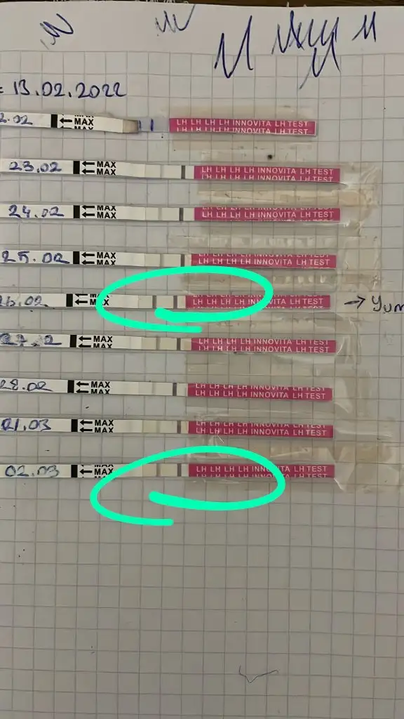 ovuslayon testi ile suan altada yüklüyorum bakarsanız benim testlerim ama malesef bu ay olmadı gebelik testleri gibi ama lh seviyesini ölcüyor yunurtlama oldugunda lh seviyesi en üst düzeye cıkıyor ya c bolgesi t bölgesinden daha koyu oluyor yada c kadar koyu oluyor ogunj degerlendiriyoruz sonra ertesi gün testi yapmaya devam ediyoruz catlamayı yakalamak için çatlama oldugunda t bölgesi zaten silikleşeçek ve o siliklesme çatlamamın oldugunu gösteriyor ve çatlama günüde dahil sonraki iki günüde degerlendiriyoruz🥰 ayy uzun oldu ama rlimden geldiğince anlatmaya calsıtım 🤭