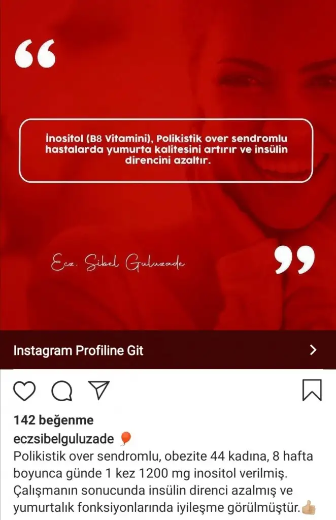 Teşekkür ederim canımŞimdi instagramda karşıma çıktı bir eczacı paylaşmış öneri olarakta benim kullandığım inositolü önermişyildizsavascisi Z Zambakkk29