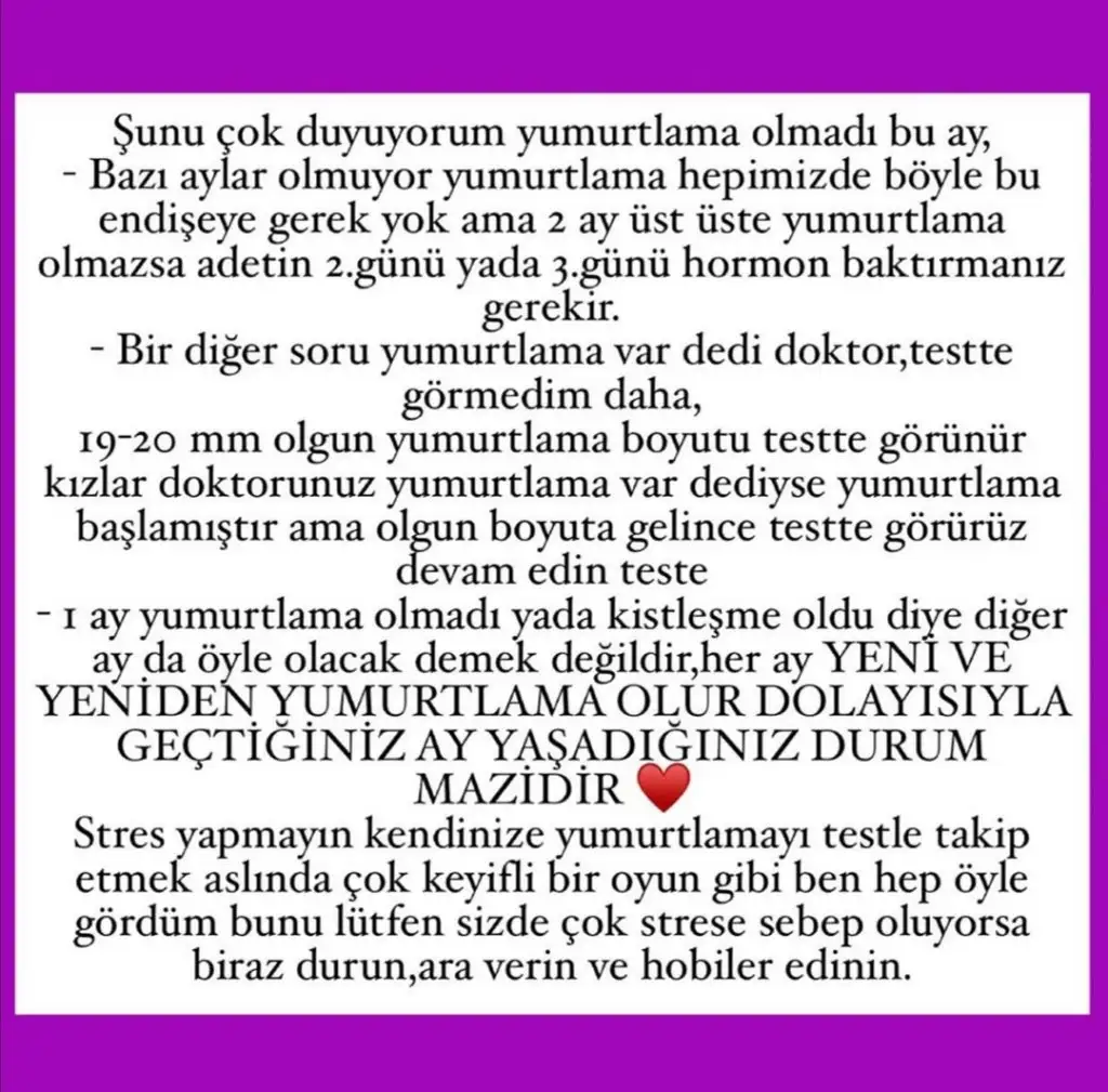 Rica ederim ben de bu konuyu merak edip internetten okumuştum bunu ve mantıklı geldi bana da. Beklemekten baska çare yok, yeter ki sonu iyi olsunTesekkur ederim bilgilendirme icin sabirsizligimizdan kaynaklaniyor hep bunlar yumurtlaman sonra gunler gecmek bilmiyor igneyle kuyu kaziyoruz