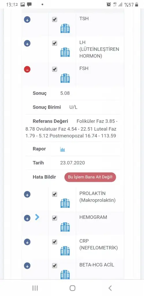 İlk değerim adete 1hafta kala 13tü.Kanama başladigi için doktorum kan testiyle artışa bakmak istedi.
