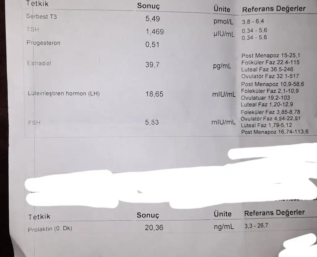 Hormonlar güzel görünüyor canim psikolojik üzüntü kaynaklı olabilir belki kafanı regl ye verme dusunme bir de tarlusal verseydi o sökerdi aslinda . Hangi gen de pihti çıktı?Kızlar selam,