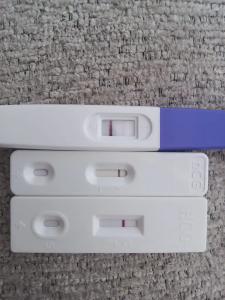 Reglim 7 gün geçmiş durumda. 3 tane test yaptım fotoğraftaki gibi sonuç verdiler. Sizce gebelik var mı? Kan vermeye gittim ama sonuçlar geç çıkacakmış.