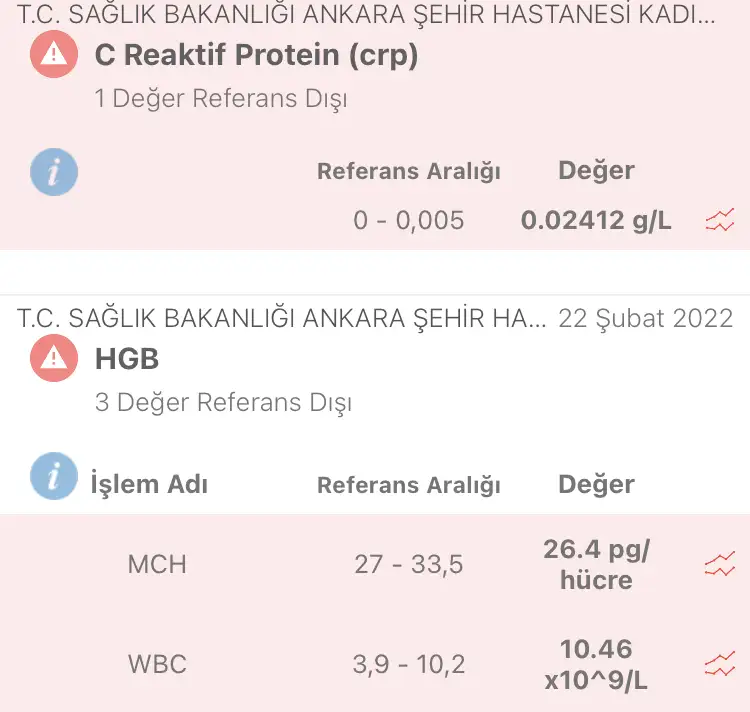 Merhaba ben 17 haftalık hamileyim kan değerlerimde referans dışı değerler çıktı hastane biraz uzakta olduğu için belki 1 aya anca gidebilirim pek anlamıyorum değerlerden lütfen bilgisi olan beni aydınlatabilir mi eğer başına gelen varsa beni bilgilendirirse çok mutlu olurum ona göre kendimi ayarlayıp hastaneye gitmeye çalışacağım