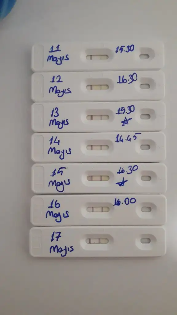 Sonra ovülasyon testini ilk kez deneyeceğim için bana çok eğlenceli geldi bu test her gün yapıyordum koyulşacak mı aa koyulaştı demekki yumurtlama oluyor aa silik oldu demekki herşey yolunda gibi gibi bana moral veriyordu ve çok inanıyordum.