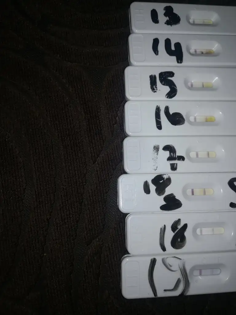 22 aralık regl oldum ilk kez kullandığım için ve gün kaçırmamak için biter bitmez 8. Günde yapmaya başladım. 12.gün pik oldu 13.gün yine pik oldu ve 14.gün silikleşti. Ve garanti olsun diye 11 12 13 14 15.günler üst üste 5 gün boyunca değerlendirdik inşAllah. İlk kez böyle arkaya arkaya değerlendirdik bunun faydası olduğunu düşünüyorum. 17.güne kadar testi yapmaya devam ettim silikleştiği için artık bıraktım.