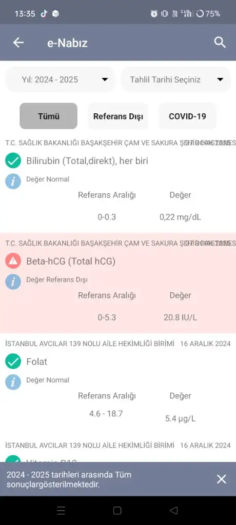28 Haziran saat 21.00 de 2. Kan testimi verdim ve 19.1 çıktı .