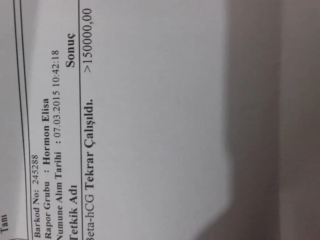 Değerin çok yüksek. Pazartesi başka bir doktora git istersen.3 gun geciktikten sonra gittim bu deger cikti