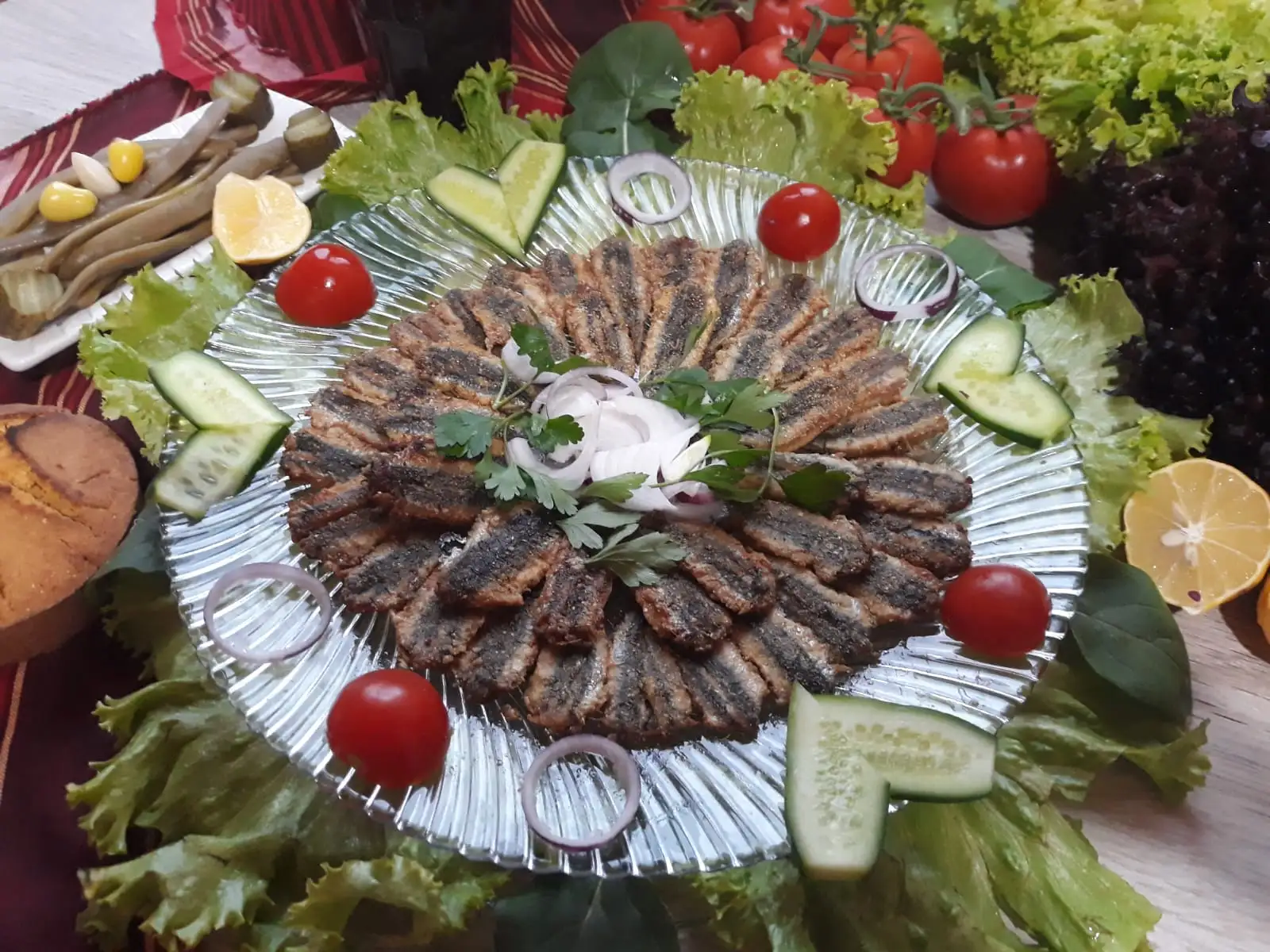 Salata,yeşillikler ,sofra düzenini önceden hazırlayalım ki hamsilerimizi sıcak sıcak yiyelim