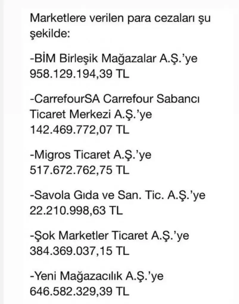 Keşke çok daha ağır cezalar verilseydi. Bu paralar bu marketler için ne ki ?