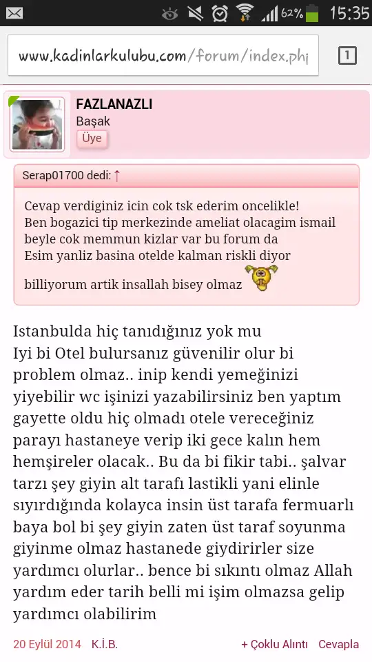 geçmiş olsun canım üzüldüm hazırlamıştın kendini ama zamanı değilmiş demekki hayırlısı ne zamansa o zaman olsun sağlık herşeyin başındaBirkaç gündür giremiyordum, çok şaşırdım yazılanlara. Resmen şok oldum. Herkes istediği gibi istediği yerde istediği doktorda olabilme özgürlüğünde. Yardım ettik diye başa kalkılmasın. Yardım isteyen rica ediyor, yardım edende kendi özgürlüğü ile yardım ediyor. Aynı durumu ben burda @aşkkitabı veNuriyebal ile yaşadım. Şunu ilave etmek istiyorum, amelyat öncesi insan çok gergin oluyor, her söyleneni teraziye koyuyor. Sonradan tekrar okuduğumda aşkkitabı ve nuriyebalın yazdıklarını objektif olarak aslında o anki bana geldiği gibi kötü yorumlar değilmiş aslında. Bu yüzden bu iki üyelerden ben şahsen özür dilerim.