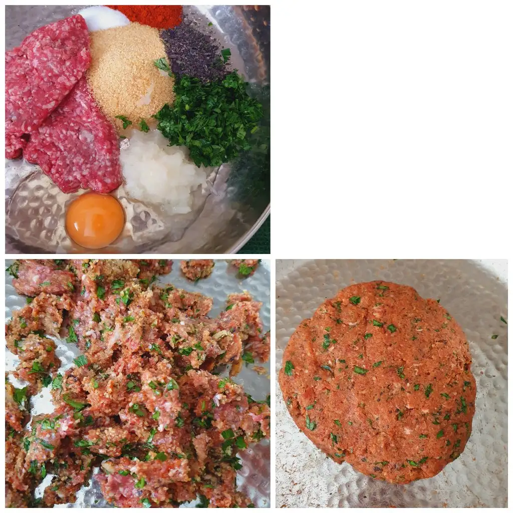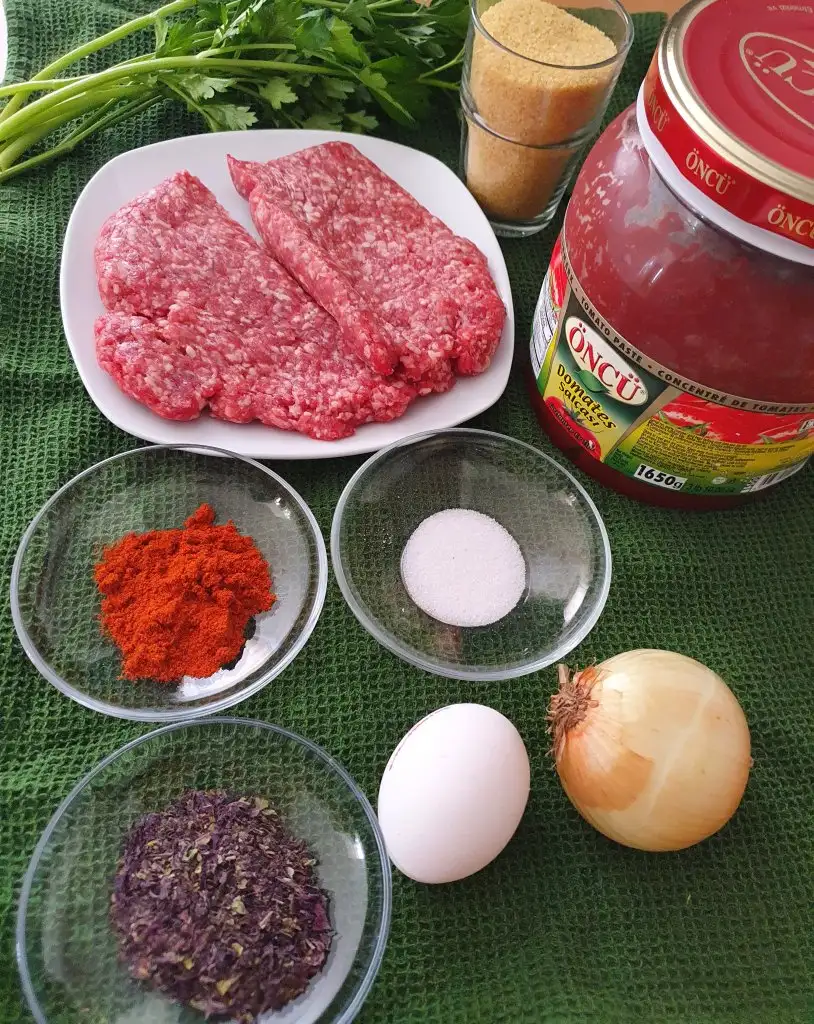 • Kıyma, bulgur, rendelenmiş soğan, yumurta, reyhan, toz biber, ince kıyılmış maydanoz ve tuzu bir kaseye alıp güzelce harmanlanincaya kadar yoğurun,