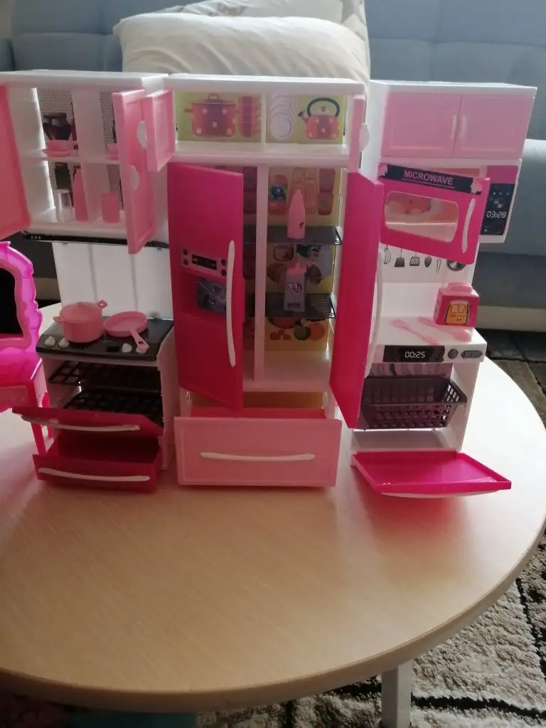 4\3 parca mutfak seti aksesuarları ve balık tutma oyunu.. Balıkların ve mutfağın stekarlarını kızım bır kısmını cıkarmıs kullanıma engel hıcbır sorunu yok.mutfk setinınde kutusu duruyor