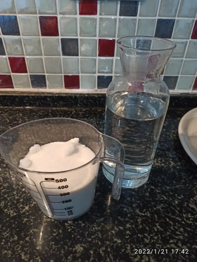 Şeker ve sıcak suyu iyice karıştıriyoruz şeker erimeli.1 portakalın suyunu ekliyoruz