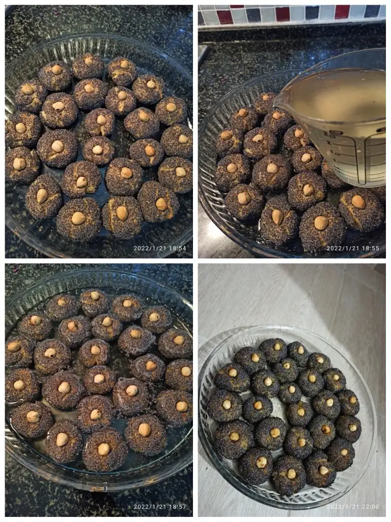 3- hamurdan ceviz büyüklüğünde parçalar koparıp yuvarlıyoruz.haşhaşa bulayıp tepsiye diziyoruz