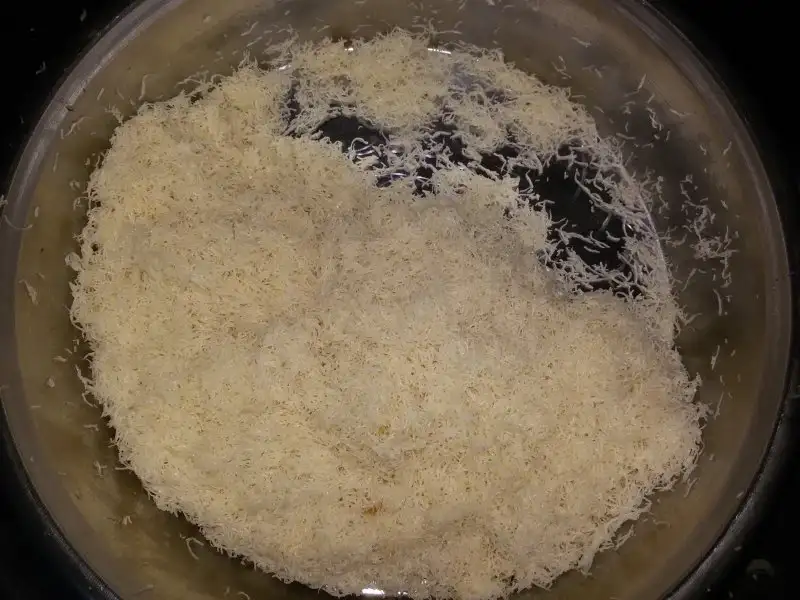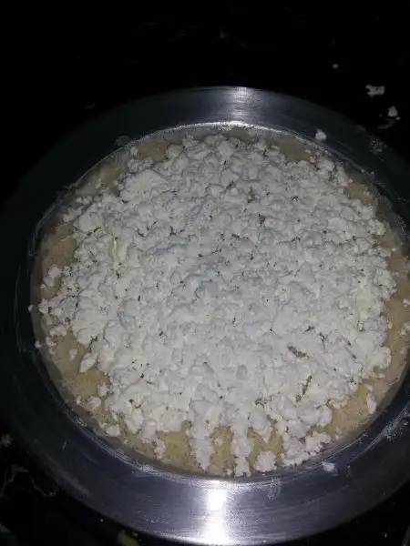 İlk kat tamamlanınca ufalanan tuzsuz peynir koyulur.