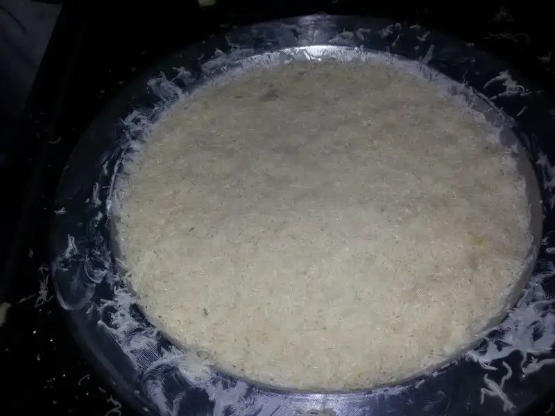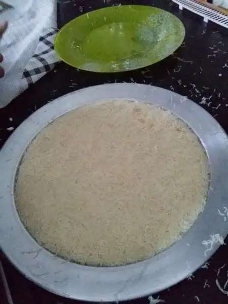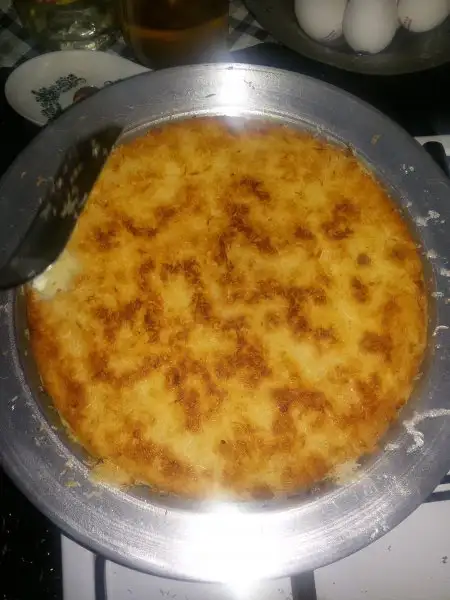 Alt kısım kızarınca bir tepsi yardımıyla diğer taraf döndürülüp pişirilir.