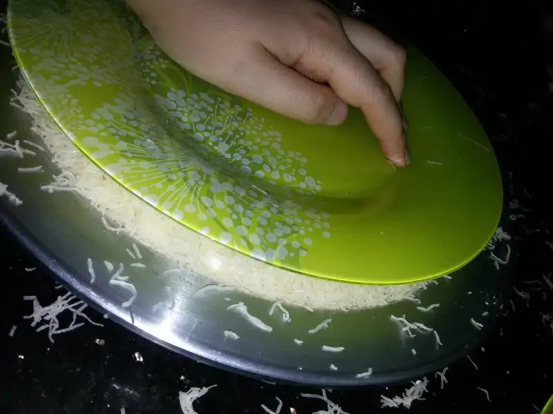 Görüldüğü gibi düz bir tabak yardımıyla kadayıflar sıkılaştırılmaya çalışılır.