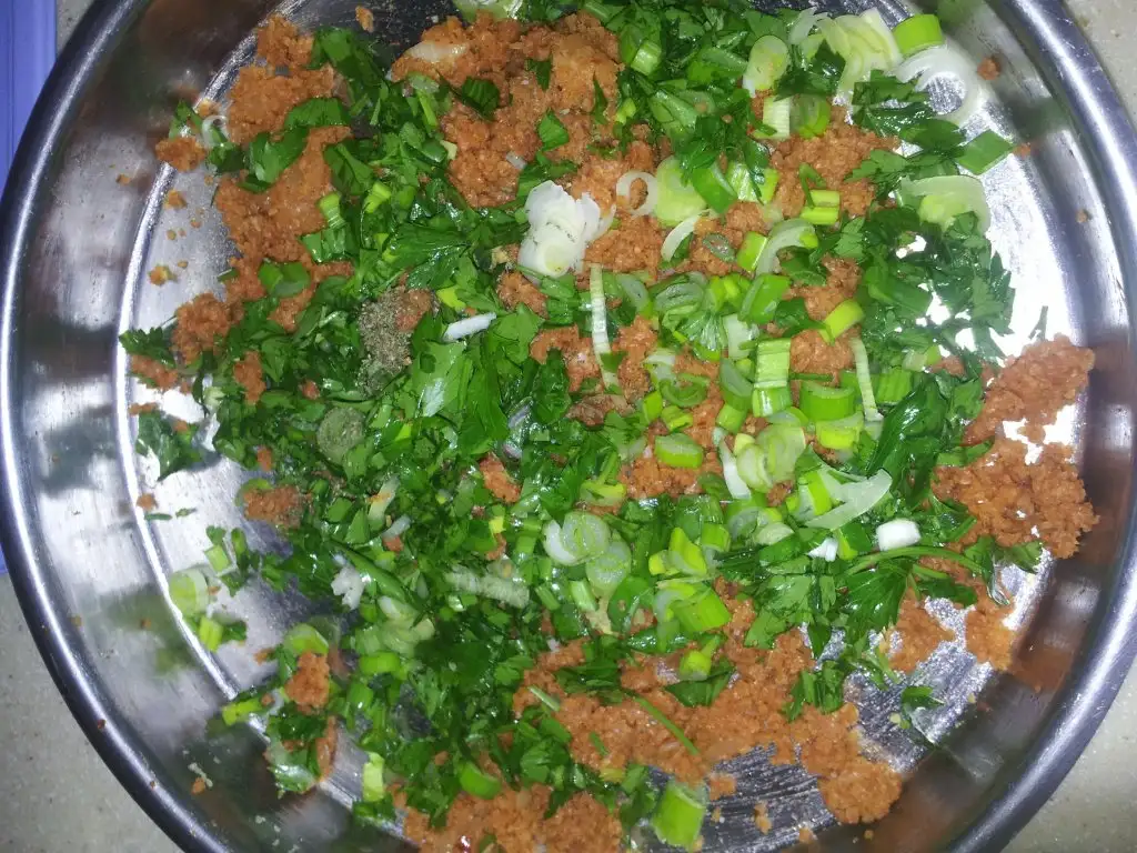 Önce bulguru kabımıza alıp elimizi az su ile ıslata ıslata yoğurmaya başlıyoruz ta ki yumuşayana dek.Bu arada tuzu kimyonu ve pul biberi ekliyoruz.Eki Görüntüle 1453732