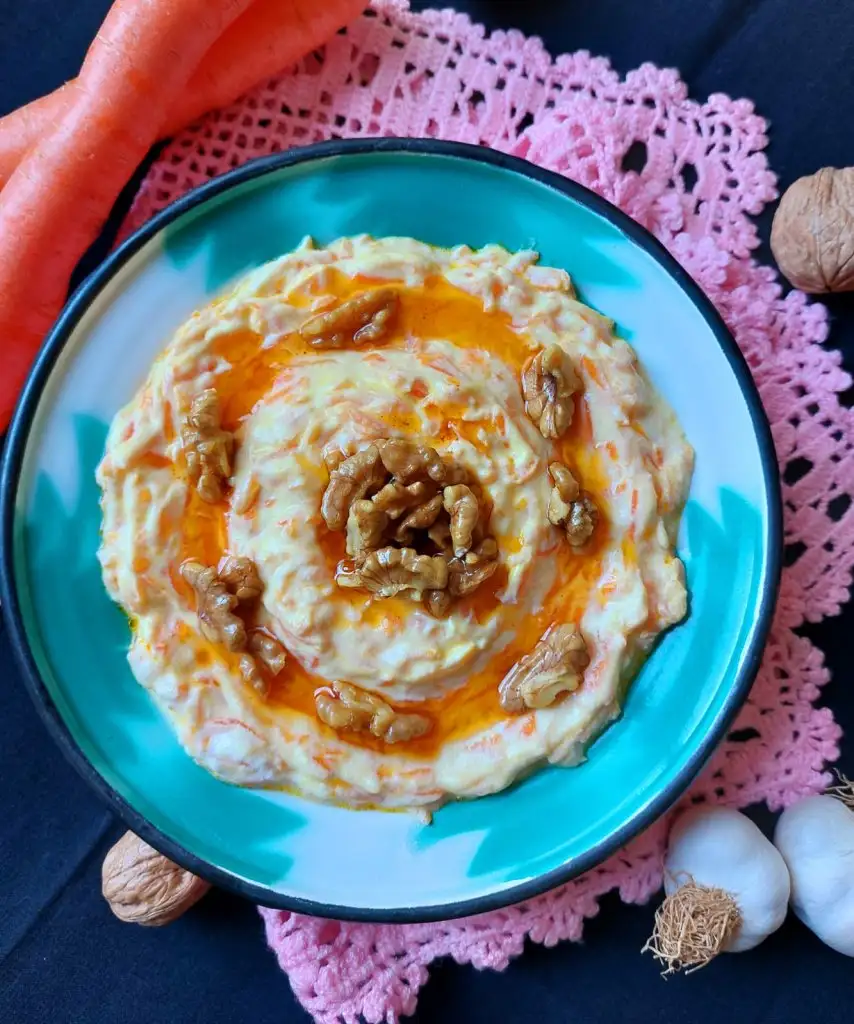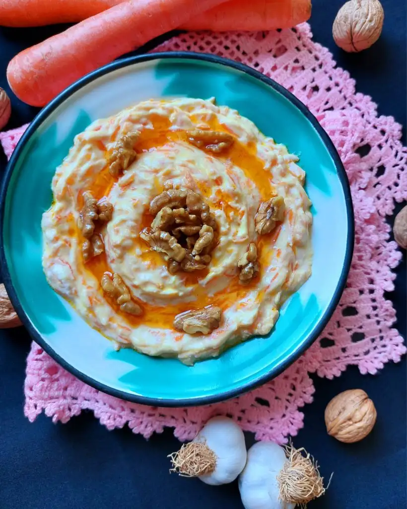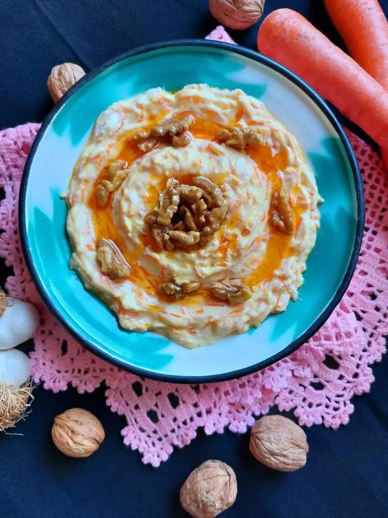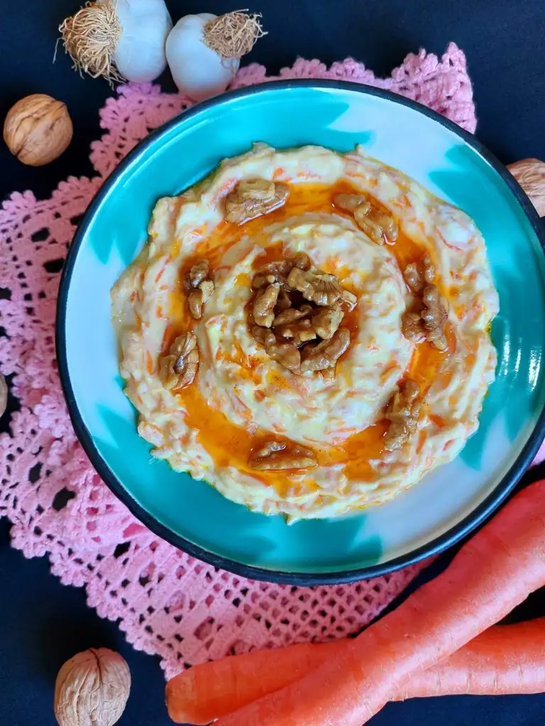 Havuclari yıkayıp kabuklarını soyuyoruz. Rendeliyoruz. Biraz yağda kavuruyoruz. Ayrı bir yerde isteğe göre yogurta sarımsak rendeleyip tuz ekleyip karıştırıyoruz. Havuc ve yoğurtu birleştirip sunum yapıyoruz.