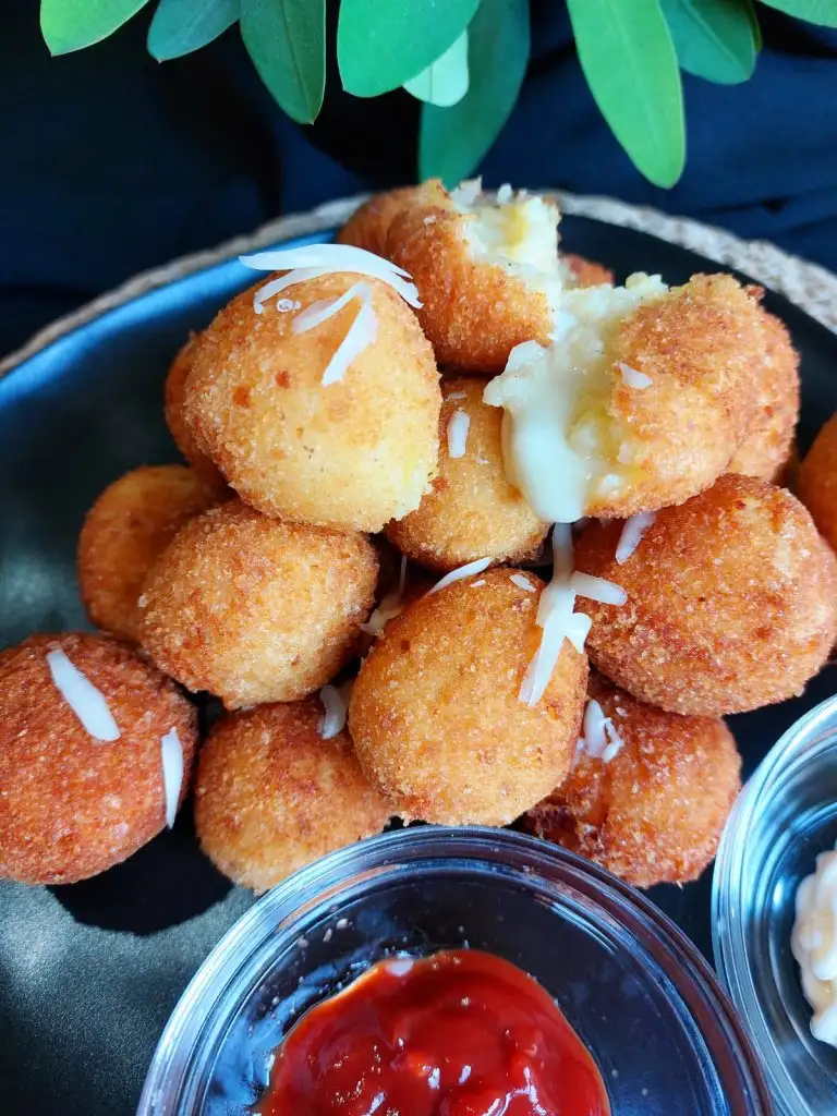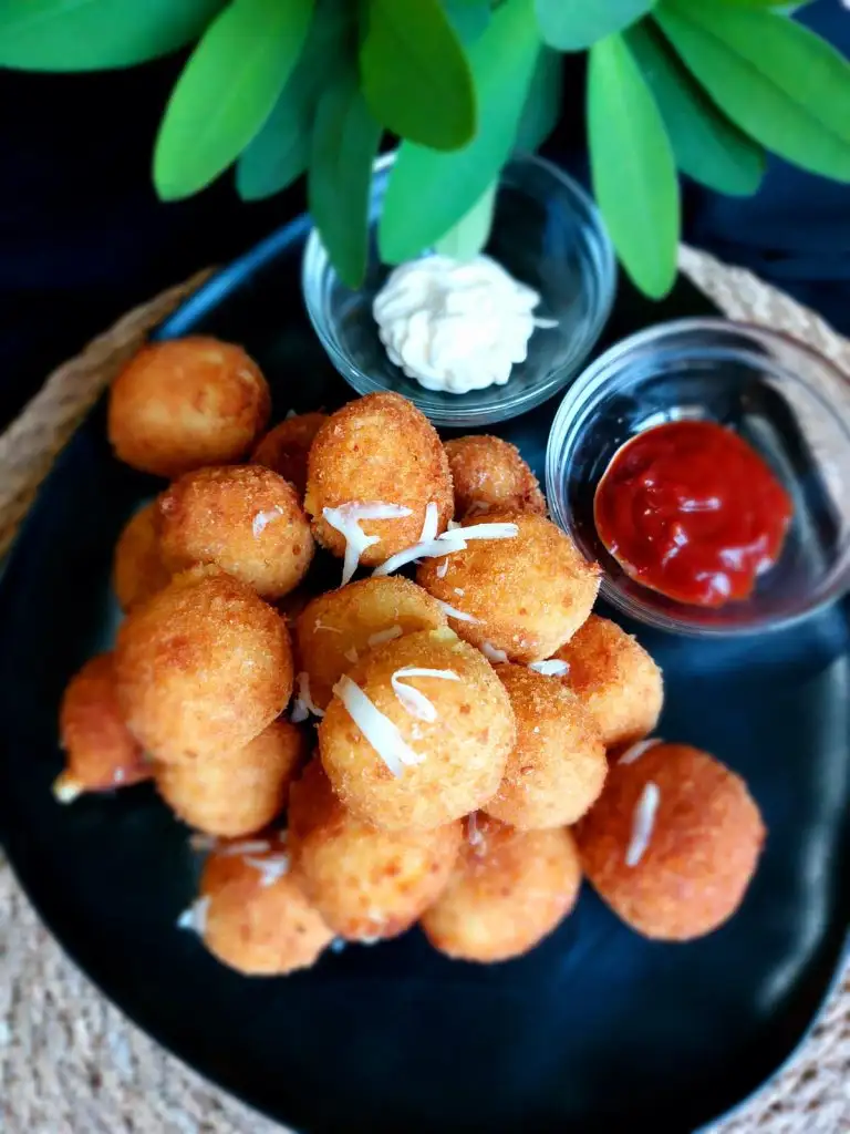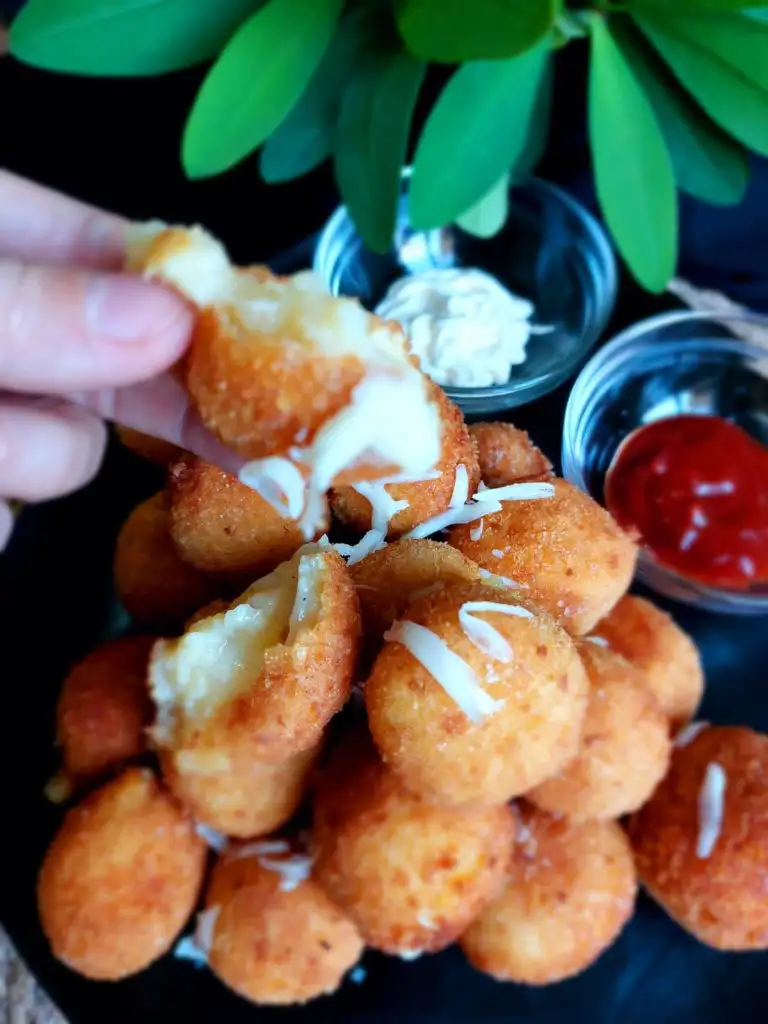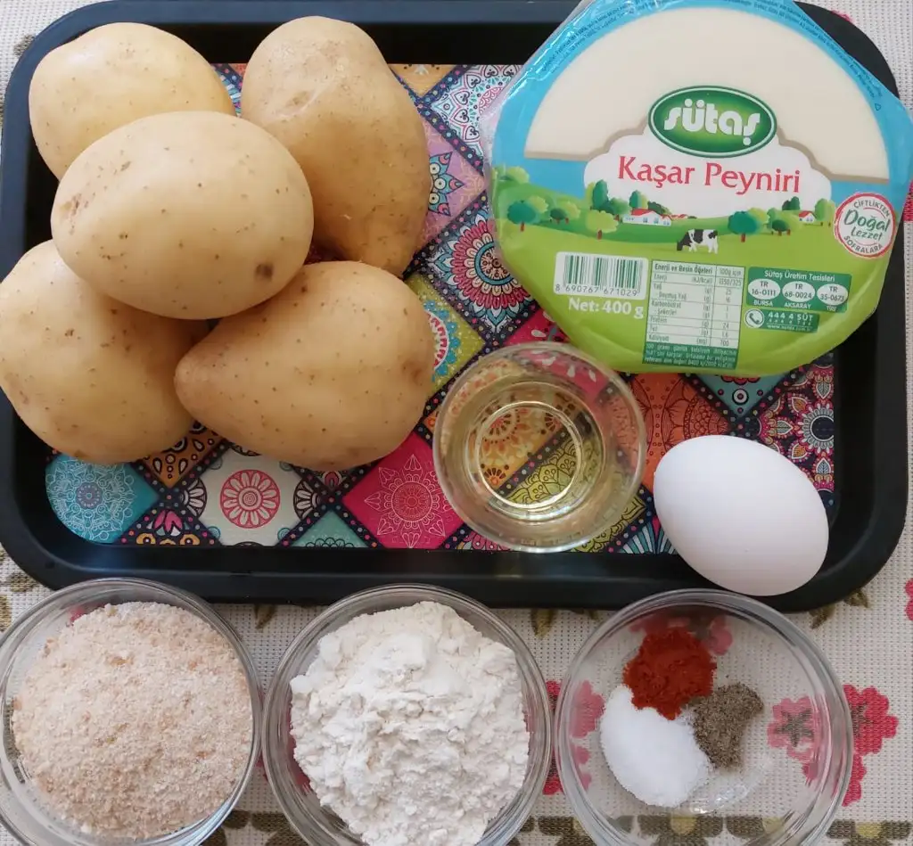 kaşarları küçük küçük dogruyoruz. Patates hamurundan biraz alıp avucumuzda açıyoruz. Ortasına kaşar koyuyoruz. Kapatıp yuvarliyoruz. Topları önce yumurtaya sonra galeta ununa buluyoruz. Biraz dolapta dinlendiriyoruz. Sonra kızgın yağda kizartiyoruz. Servis ediyoruz.