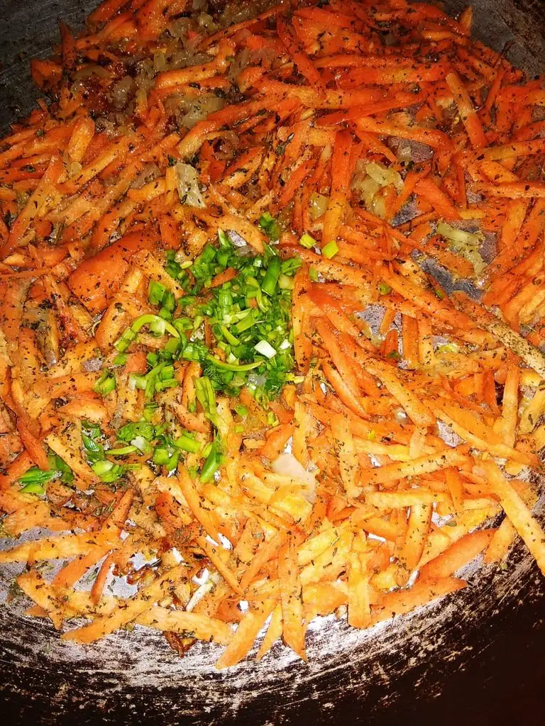Havucu soğanın üzərinə ekliyoruz havucla birgə sarımsaq və kürü naneyide ekliyib 5dak pisriyoruzEki Görüntüle 2257062