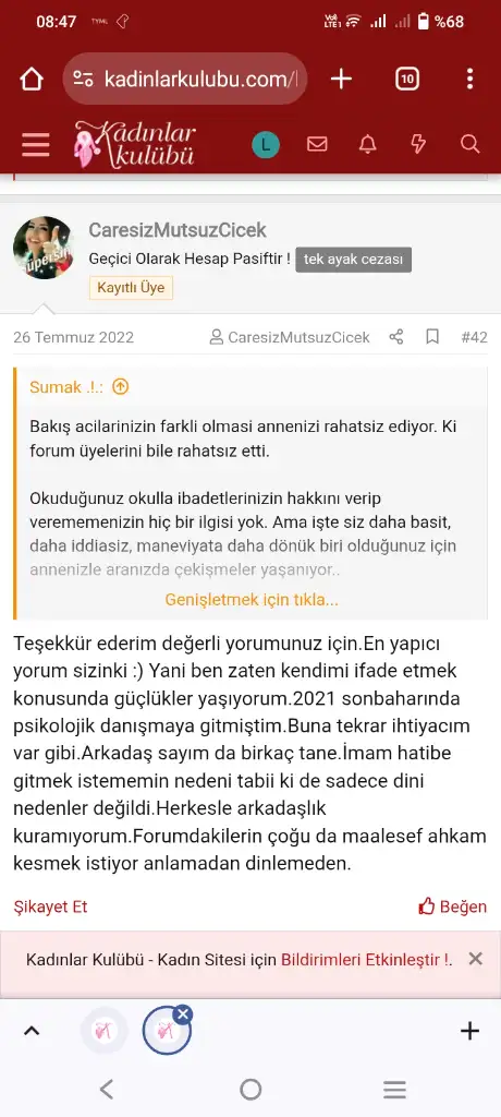 O konuya bakiyordum az once. O uye de PDR'ye gitmis ve onu terapi saniyor muhtemelen. Ve yine sac uzunlugu mevzusu..Şarkıcı Bendeniz’e takıntılı başka bir üye vardı. Aynı kişiler mi acaba? Tarz çok benziyor çünkü. Hatırlayan çıkar mı?