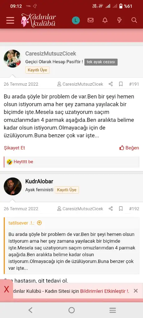 O konuya bakiyordum az once. O uye de PDR'ye gitmis ve onu terapi saniyor muhtemelen. Ve yine sac uzunlugu mevzusu..Şarkıcı Bendeniz’e takıntılı başka bir üye vardı. Aynı kişiler mi acaba? Tarz çok benziyor çünkü. Hatırlayan çıkar mı?