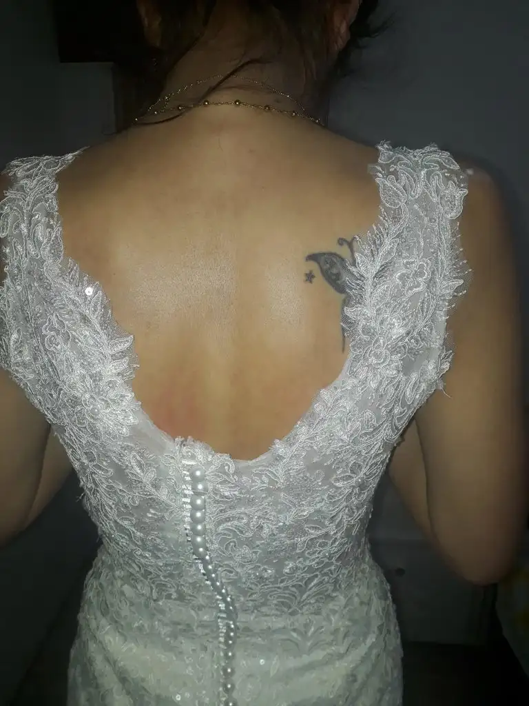 olmazmı bu en kötü yeri önden bakınca gayet normal duruyor ama detaylara girince danteller oyulmamıs silikonla yapıştırılmıs eteklerinldeki dantelleri belli noktaları yapıştırmslar görünüşte cok ugrastılar ama sonuc bu üstelik götürdüm tekrar düğmeleri sağa aldı sola aldı bsyler yaptı bu seferde acayip dar oldu nefes alamaz haldeydim bana diyorki ya öle gyceksn ya böle duvak deseniz rezaletGelinliğin Baska yerinde birsey var mı?