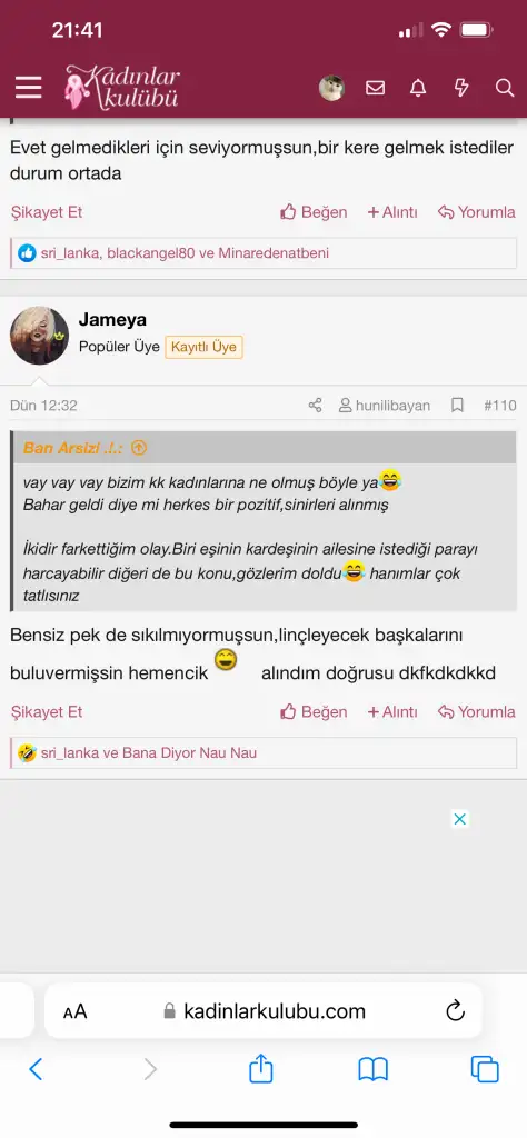 Yo ben konularımda yazmanı istemiyorum demedim ki onu nerden çıkardın? Orda da basit bir espiri yaptım sadeceseni nasıl zor durumda bıraktım Jameyacım? seninle daha önce mesajlaşmadık arkadaş değiliz tanımıyoruz etmiyoruz.mesajını da gelip burada ekran görüntüsü atmadım. milletin yorumlarının altına “hehe hiç durmuyor ehe ehe “ diye beni harcarken iyi miydi? dursun istediğin kişiye gel konu açtım aha ehe diye niye mesaj atıyorsun.hem davet edip hem konularında yazmamı istemiyormuşun ben sana sarıyormuşum gibi lanse ediyorsun