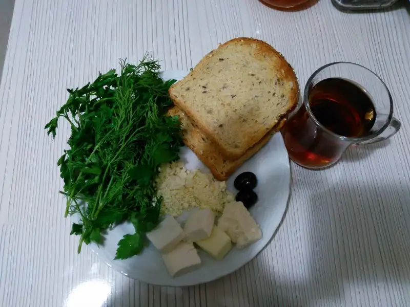 Buda sabah kahvaltımEki Görüntüle 1740978 iki dilim karışık tahıllı ekmek bol yeşillik bol peynir 2minik zeytin şimdi sağlık ocağının yolunu tutuyorum
