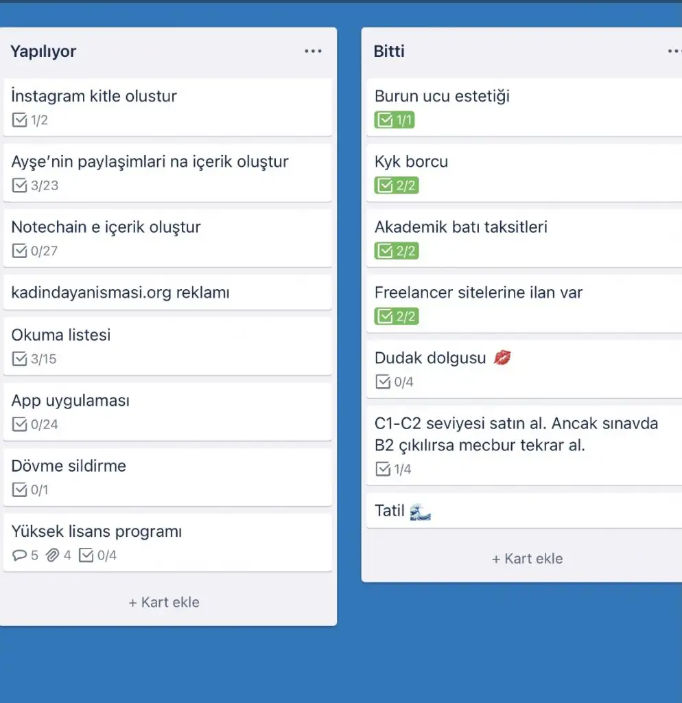 - spor yapmak. zaten yapı olarak zayıf bir kızım. 163 boy 52 kilo. Ama bu günlüğe baslarken yaptigim squat bile hala totomda. Yani zayıf değil fit olmak istiyorum. Bu nedenle de gerçekten spor yapmak istiyorum. Öyle ayda üç beş gün değil. Bunu hayatıma almak istiyorum. Bir uygulama indirdim başlangıç olarak. Esneme hareketleri var ve 30 günün sonunda bacağını 180 derece açıyorsun. Bugünlerde bunu yapmak istiyorum. Açarsam buraya da atarım .
