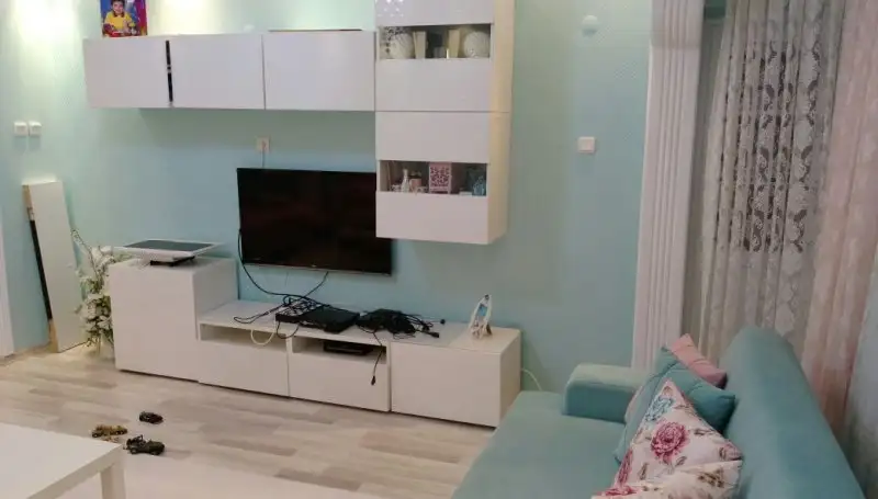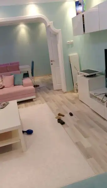 Ünitenin oldugu duvar , boyanabılır kagıt ve oradakı renk beyazla acılmamıs halı