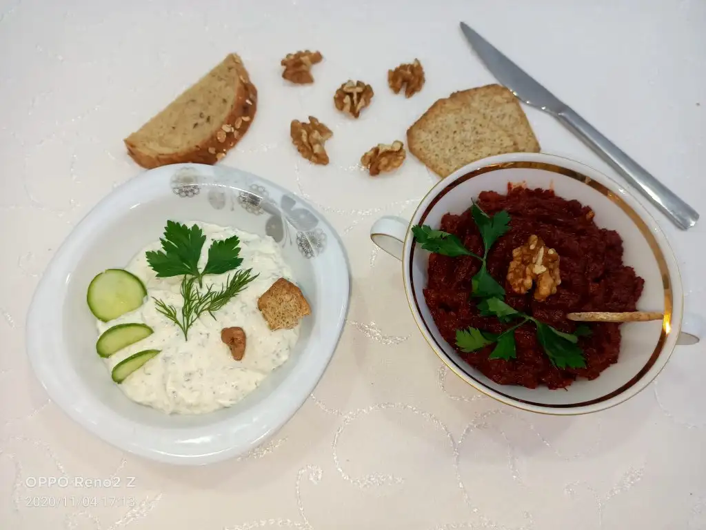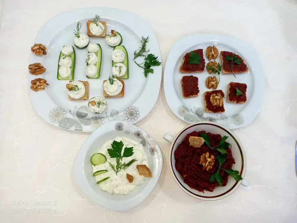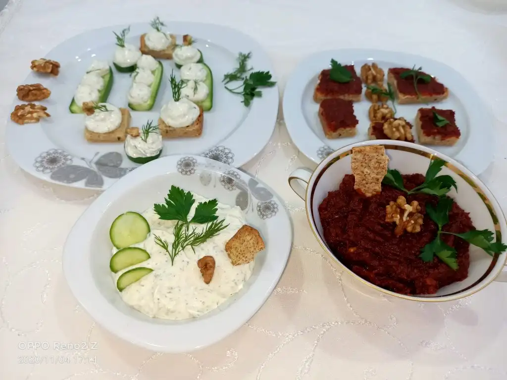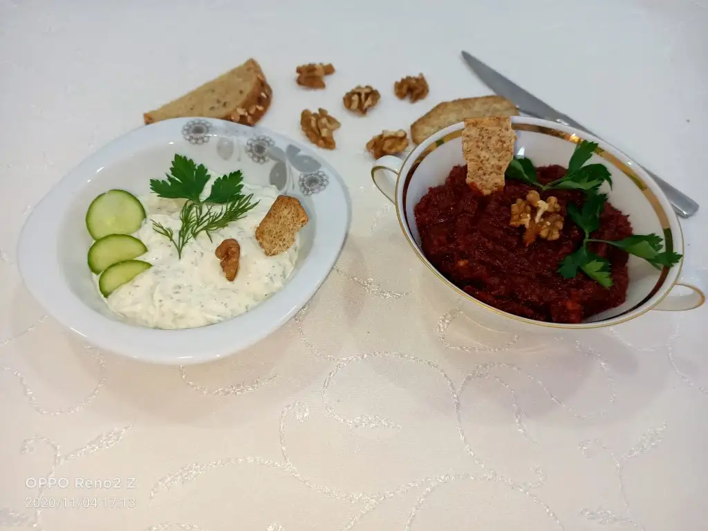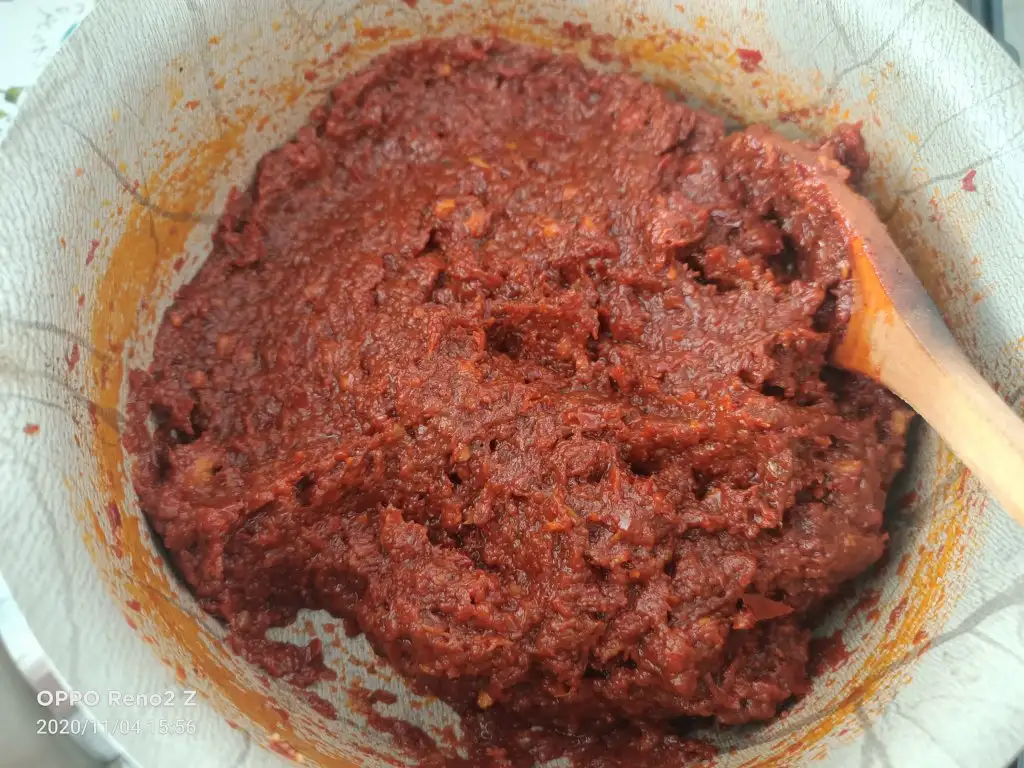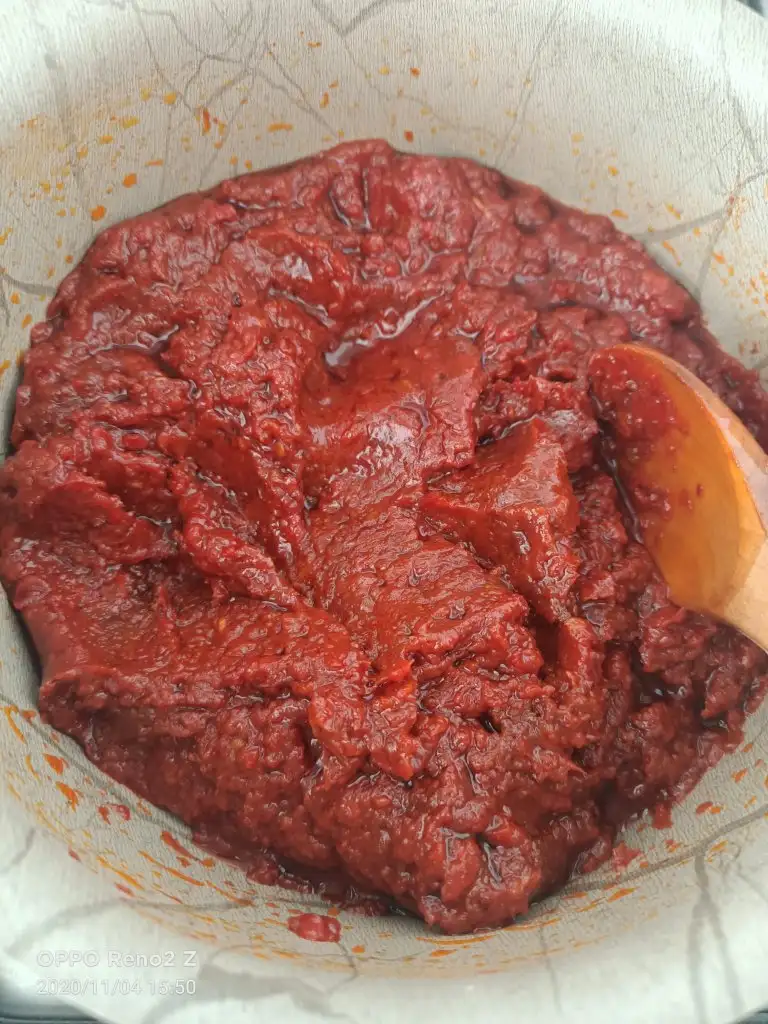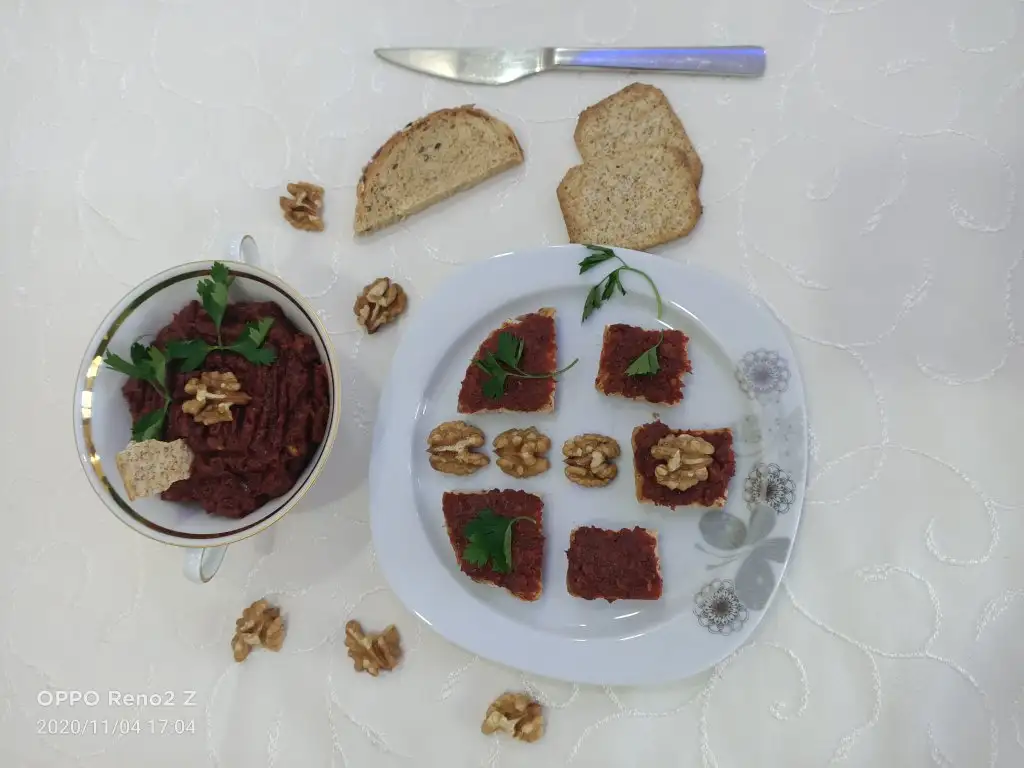 Zeytinyağını tavaya alıp üzerine salçaları ve rendelenmiş sarımsağı ekleyip 5 dakika kısık ateşte kavuralım. Daha sonra cevizi ve baharatları ilave edip karıştırıp kapatalım.