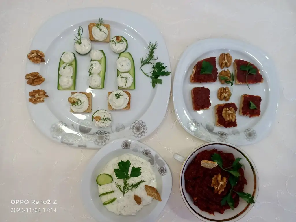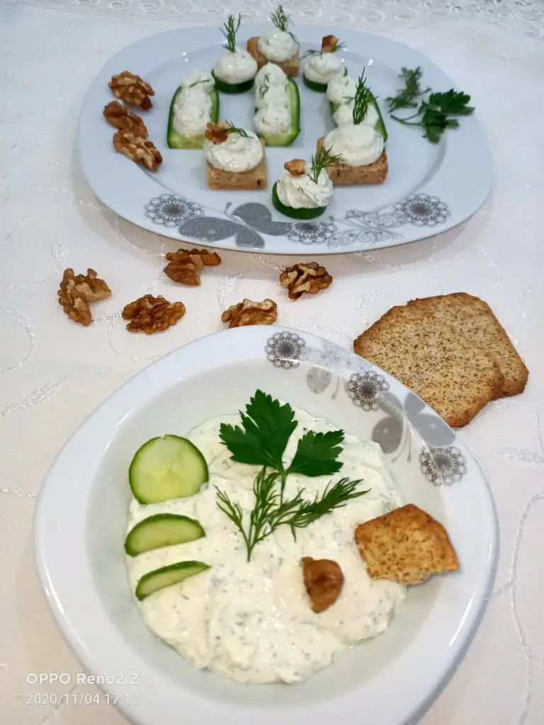 Tereyağını eritip naneyi biraz yakalım. Peyniri rendeleyelim, dereotunu ince ince kıyalım. Hepsini karıştıralım ve hazır.