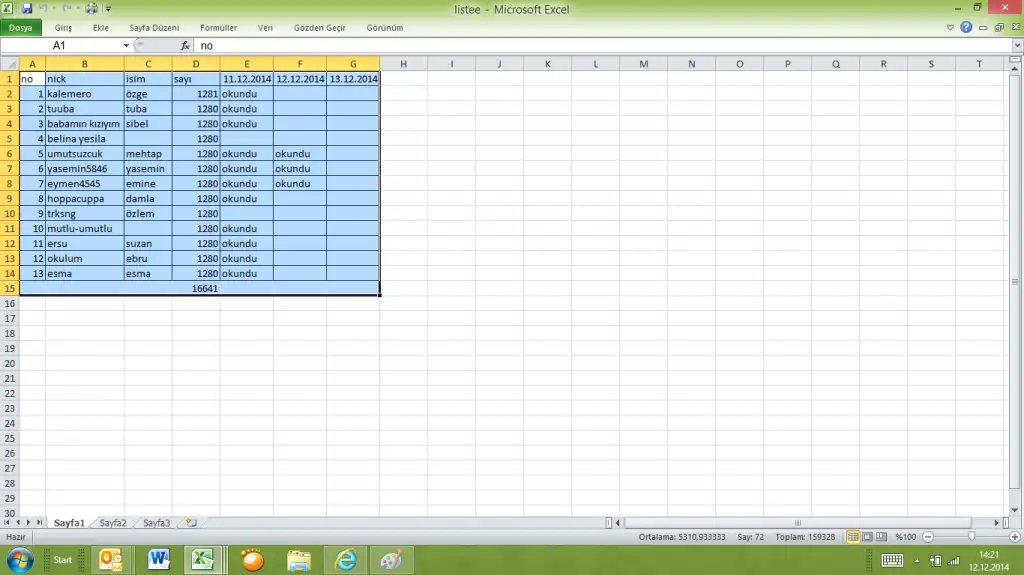 evet canm şuan için sıkıntı yok herkes bilgi veriyor ama bir tablo yaptım orda takip edeceğimkalemero, dün herkes namazını kılıp, okudu mu?