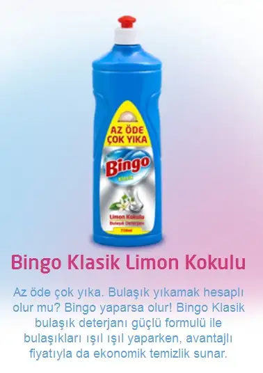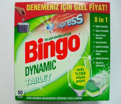bingoların içeriğinde de doğada %100 çözülmeyen maddeler var ben o yüzden Ersağ markasını daha çok beğendim evimde de var bulaşık deterjanı dışında çok memnnum