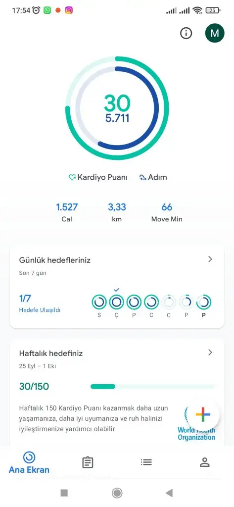 Bende sonradan adımımı ekledim menünün altına bugünlük 5000 adım olmuş evde adimlamistim bundan sonra 6000 e ulaşırım