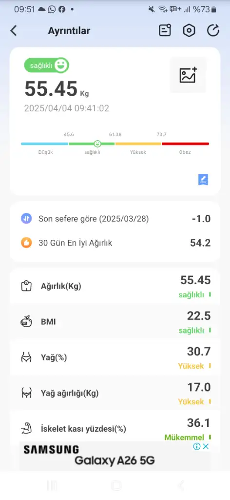 Başlangıç kilom aslında 61 ama geçen hafta bayramda en son 59.5 idim