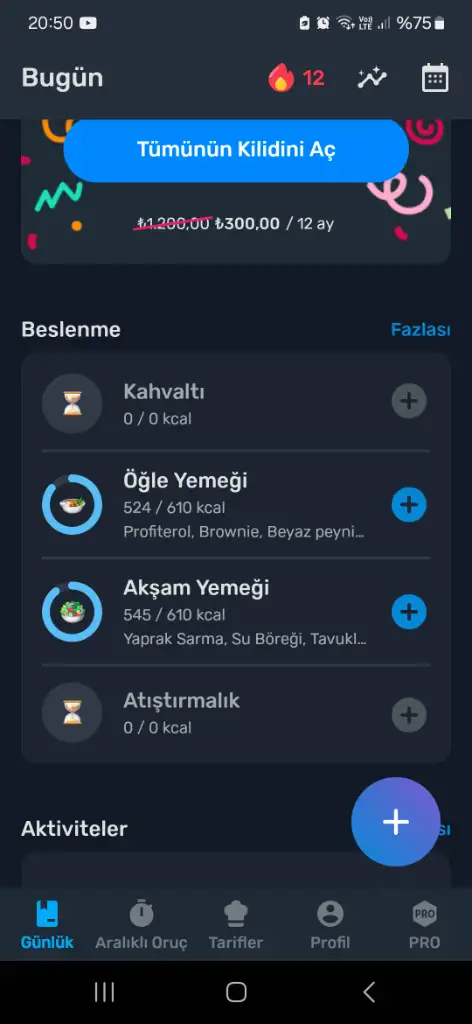 İlk ögün 13.00 da 15.00 soda ve bitterle ara ögün 17.30 da da ceviz hurma günü kapadım