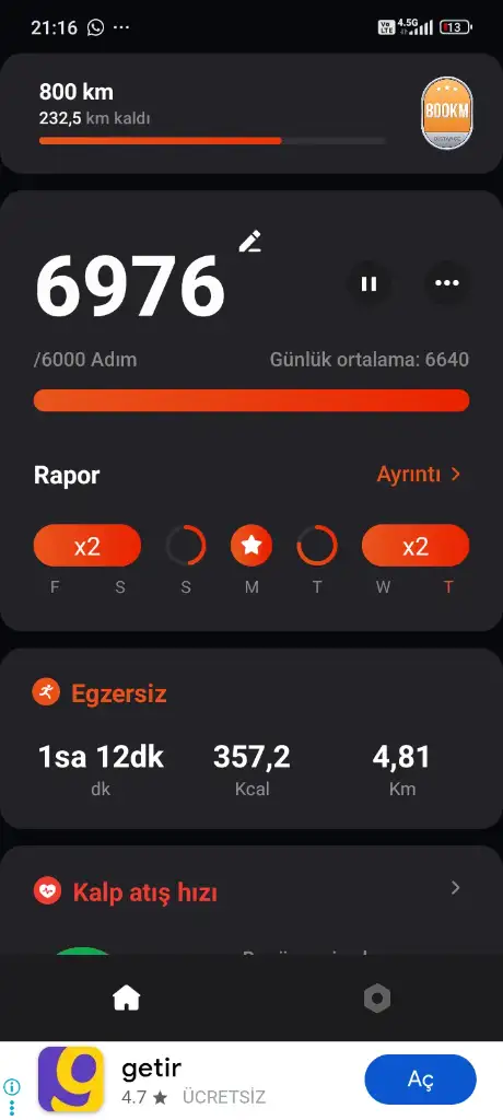Spor 11097 adım, 10 bacak kaldırma