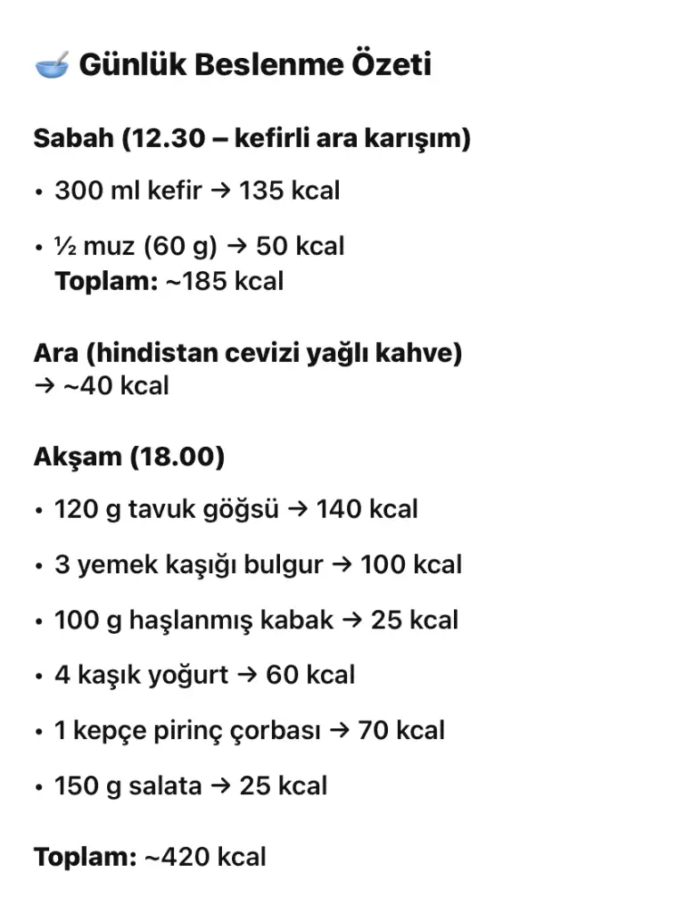 17.45 6 yk taze fasülye yemeği, 2 dilim ekmek, 1 kase yoğurt